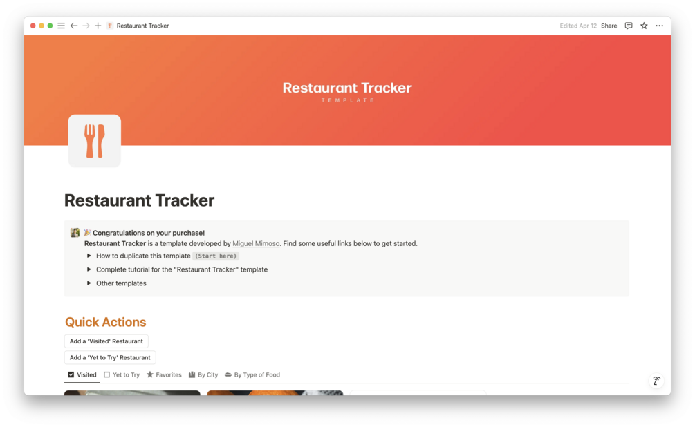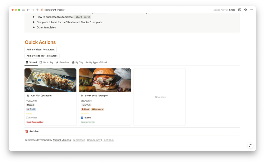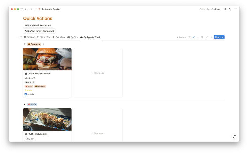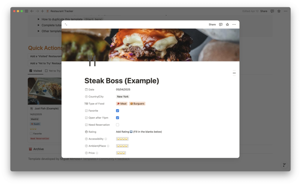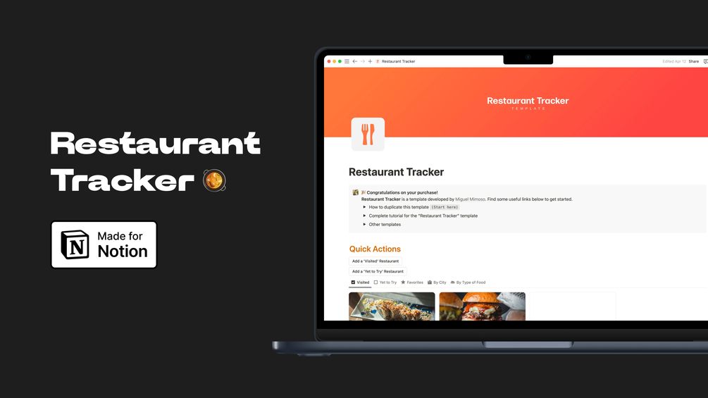 🥘 If you're a true foodie and love to track, rate, and revisit amazing restaurants, this Notion template is your perfect digital companion. With smart views, an automatic rating system, and an intuitive design, you’ll never forget a great meal again. 😋